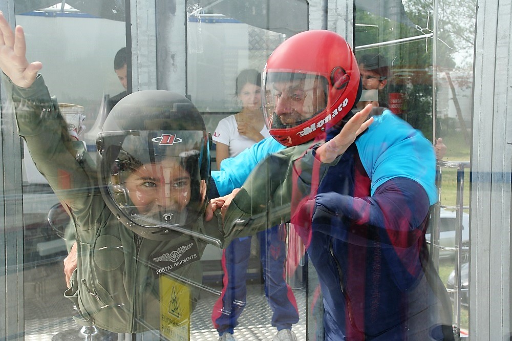 Contrairement au parachutisme, le vol en soufflerie est une expérience qui peut aussi être expérimentée par les enfants de 5 ans et plus.